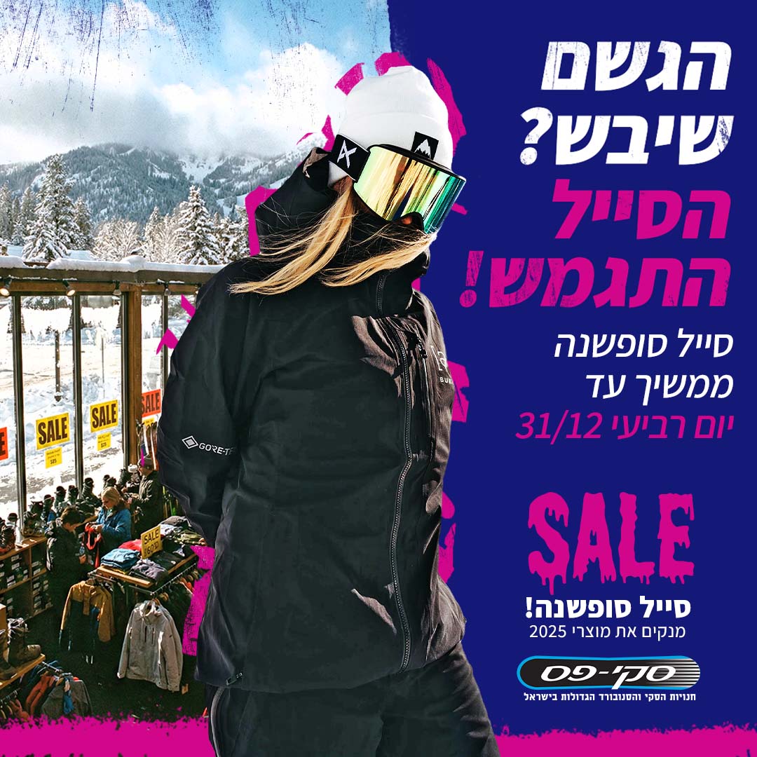 סייל סופשנה מטורף בסקי-פס תל אביב! הזדמנות אחרונה, סופית, פיניטו, לשנת 2025 לשים יד על מוצרי ביגוד וציוד סקי וסנובורד שווים באמת, רגע לפני שהשנה